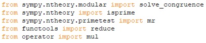 Обратное число для A = (23, 87, 12, 34, 56) по модулям p1 = 289, p2 = 361, p3 = 529, p4 = 841, p5 = 961 соответственно: A−1 = (88, 83, 485, 470, 532).