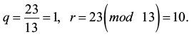 где ai – остаток от деления числа X на модуль mi, то есть ai = X mod mi; пара a1, a2, ... an называется модулярным представлением числа X.