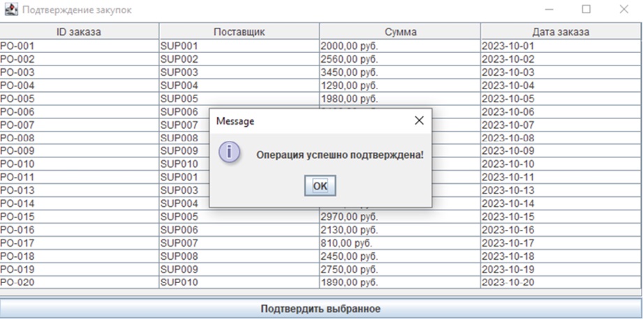 Рис. 10. Сообщение о подтверждении последней совершенной закупки