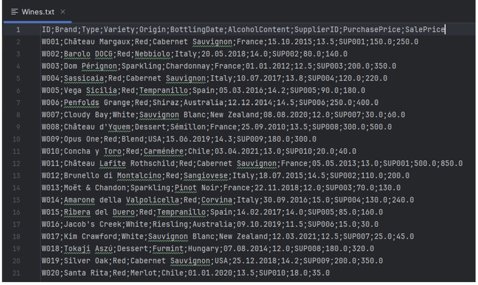 Так, в файле Wines.txt размещаются исчерпывающие сведения о винах, включая:
