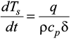 Для сравнения интенсивности процессов теплообмена в двух случаях можно воспользоваться отношением Nu1/Nu2. Скорость роста температуры поверхности dTs/dt определяется тепловым потоком q и теплоемкостью материала: