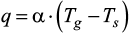 где ρ – плотность материала поверхности, cp – удельная теплоемкость, δ – характерная толщина прогрева. Тепловой поток q выражается через α и разность температур: