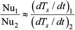 Для двух разных условий отношение Nu1/Nu2 пропорционально отношению скоростей роста температуры: