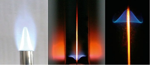 Рис. 3. Изображения различных видов пламен: прямое, обращенное и опрокинутое обращенное